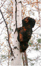 Chaga Mushroom, only grows on white or yellow Birch Trees. It only grows on 1 out of 1,500 trees. It only starts growing on the tree when its about 25 years or older. They grow in all shapes.