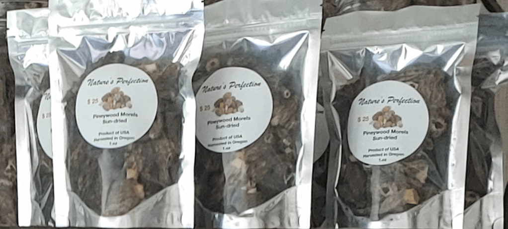 We harvest wild Morel mushrooms in the Oregon Mt. We sun-dry all of our mushrooms the same day they are picked.